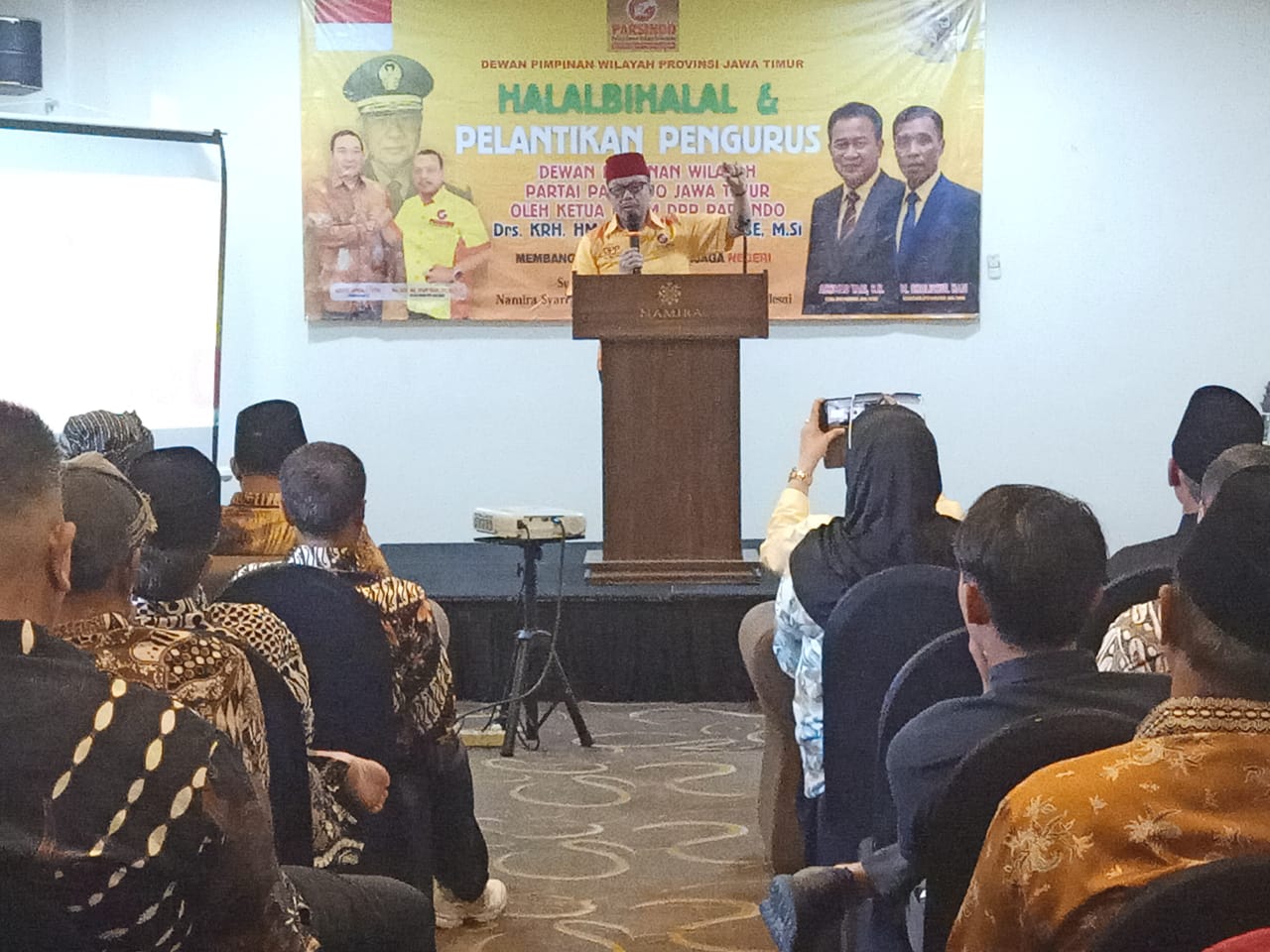 Surabaya – DMTVmalanv.com Dewan Pimpinan Wilayah (DPW) Partai PARSINDO Provinsi Jawa Timur menggelar kegiatan Halal Bihalal sekaligus Pelantikan Pengurus yang berlangsung di Hotel Namira Surabaya, Kamis (2/4/2026).