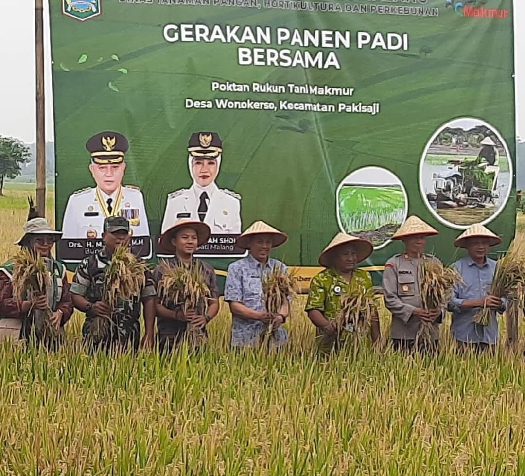 “Panen Raya dan Gerakan Panen Padi Bersama di Desa Wonokerso merupakan momentum penting dalam mendukung ketahanan pangan dan apresiasi atas kerja keras para petani dalam meningkatkan produktivitas pertanian di wilayah Kecamatan Pakisaji,” ujar Camat Pakisaji Endah Sriyati.