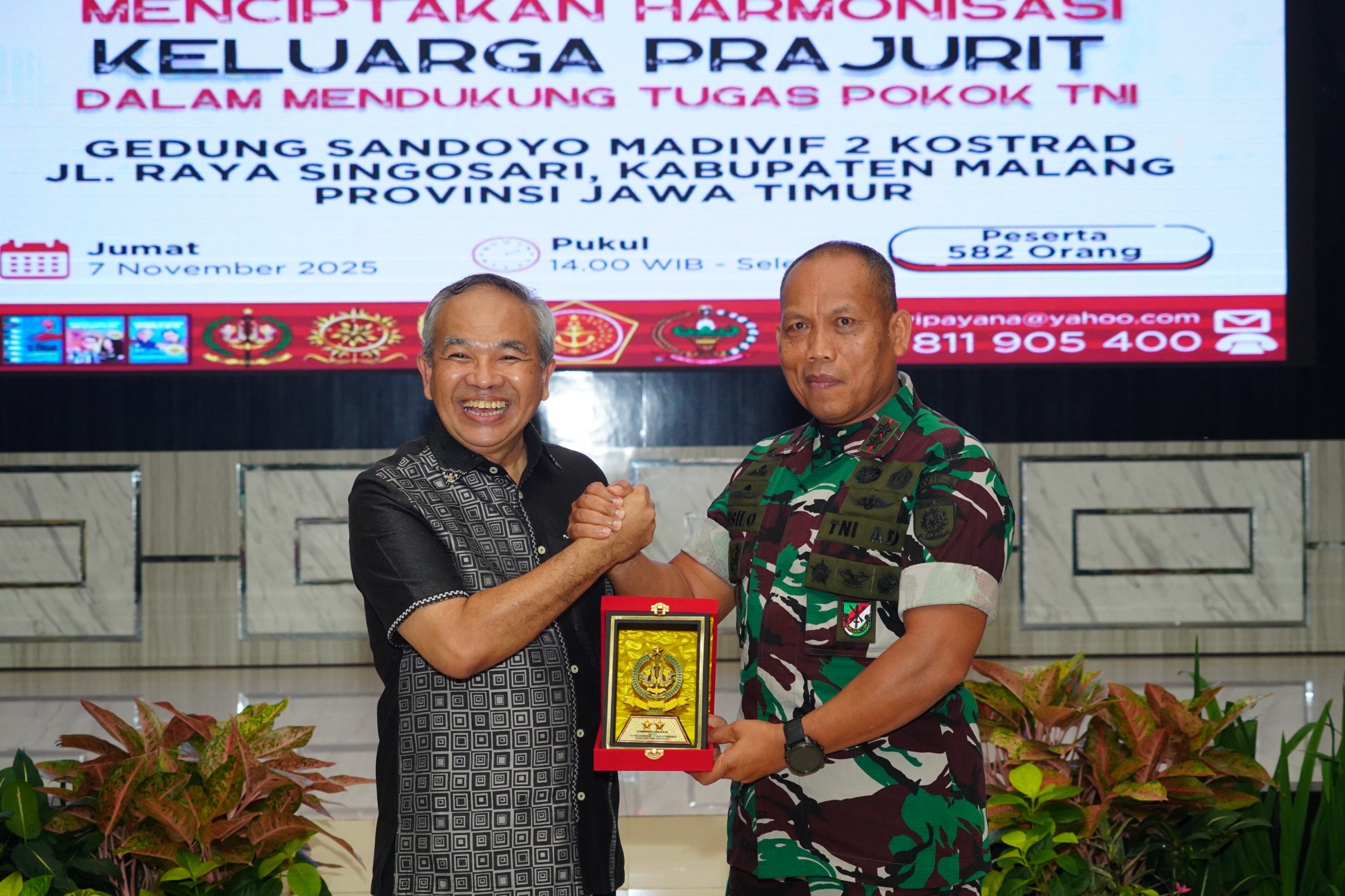 Malang — DMTVmalang.com Divisi Infanteri 2 Kostrad menyelenggarakan acara inspiratif bertajuk “Menciptakan harmonisasi keluarga prajurit untuk mendukung tugas pokok prajurit ” di Gedung Sandoyo, Madivif 2 Kostrad, (Malang, 7 November 2025)