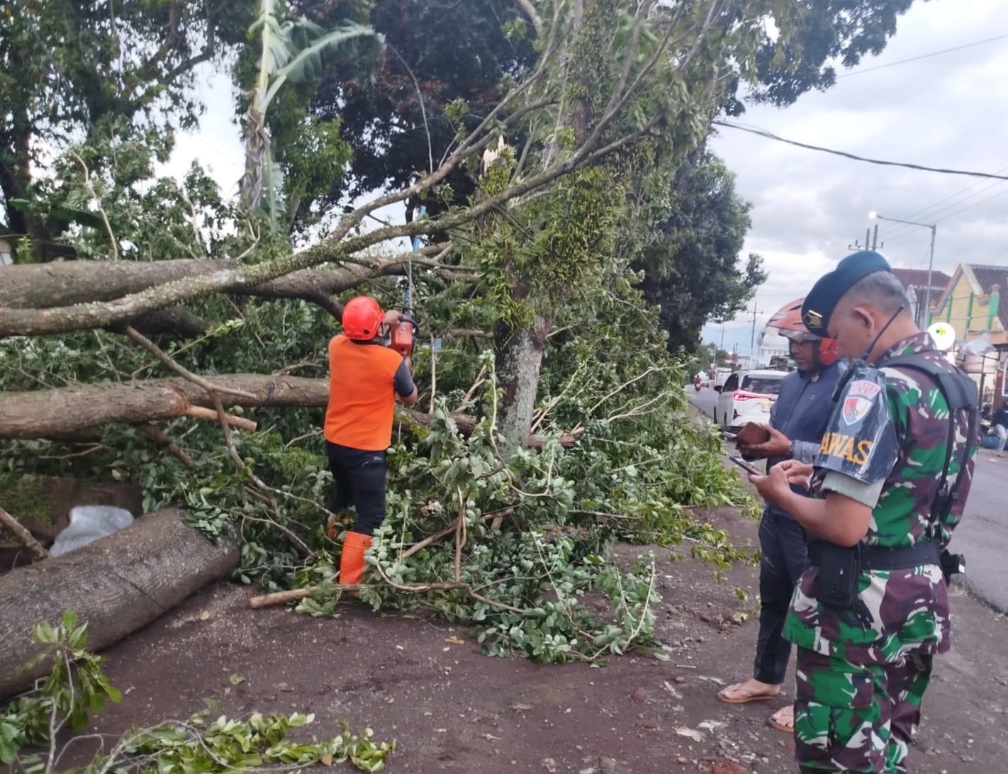 DMTVmalang.com – Badan Penanggulangan Bencana Daerah (BPBD) Kabupaten Malang melaporkan dua kejadian pohon tumbang di wilayah Singosari dan Kepanjen pada Minggu (8/3/2026). Pohon tumbang di Desa Tamanharjo, Singosari, menimpa jaringan listrik dan telekomunikasi pada bahu jalan sekitar pukul 16.00 WIB. “Pembersihan telah selesai dilaksanakan,” kata Kepala Bidang (Kabid) Kedaruratan dan Logistik, BPBD Kabupaten Malang, Sadono Irawan, S.Sos, MM.