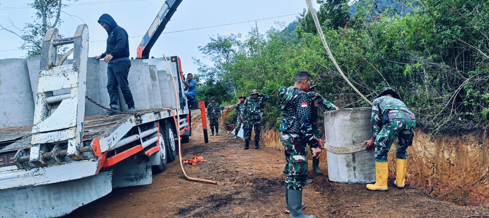 Dengan semangat kebersamaan, anggota Satgas dan warga bahu-membahu menurunkan serta menata gorong-gorong di titik lokasi yang telah ditentukan. Pekerjaan ini sekaligus menjadi bukti nyata sinergi antara TNI dan masyarakat dalam membangun desa menuju kehidupan yang lebih baik.