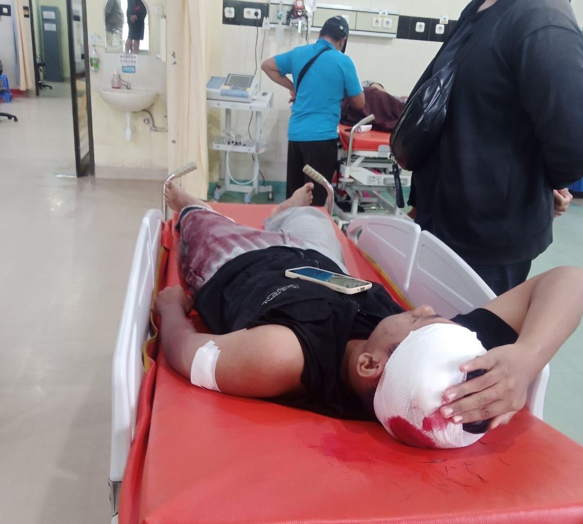 Keluarga korban, pengeroyokan, memberikan apresiasi upaya polisi yang terus melakukan perburuan pelaku, dan tampak Ervan saat perawatan medis, yang kini sudah diperbolehkan pulang dan menjalani rawat jalan.(ist)