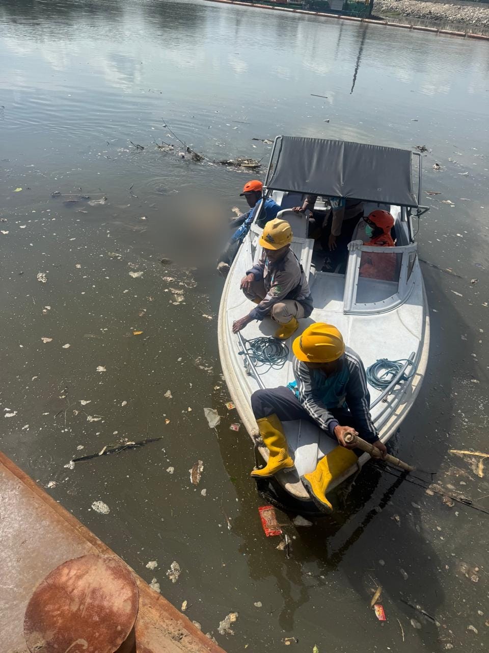 Sesosok mayat pria tanpa identitas ditemukan mengapung di depan pintu Bendungan Sengguruh, Desa Sengguruh, Kecamatan Kepanjen, Kabupaten Malang, Minggu (30/11/2025) pagi.